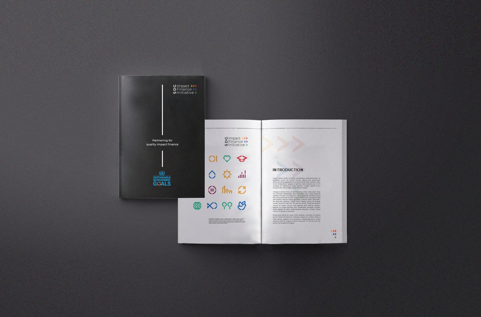 The logo design is built around three symbolic elements: • The Pillar (SDG) - Vertical and bold, representing the foundation and structure that supports financial solutions aligned with the Sustainable Development Goals. • The Middle (Impact Finance Initiative) - Clean and modern typography expressing professionalism and accessibility, bridging capital and innovation. • The Strategy (Multicolor Arrows) - A dynamic progression of colors inspired by the SDGs, symbolizing collaboration, joint effort, and collective growth. Together, these components create a balanced and solid form: one that embodies both the strength of financial structure and the optimism of global progress. The broader visual system was expanded from this concept, incorporating a modular color palette and data-friendly templates adaptable to reports, presentations, and digital platforms.